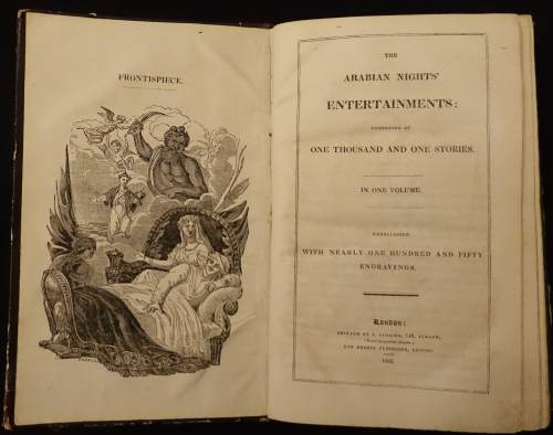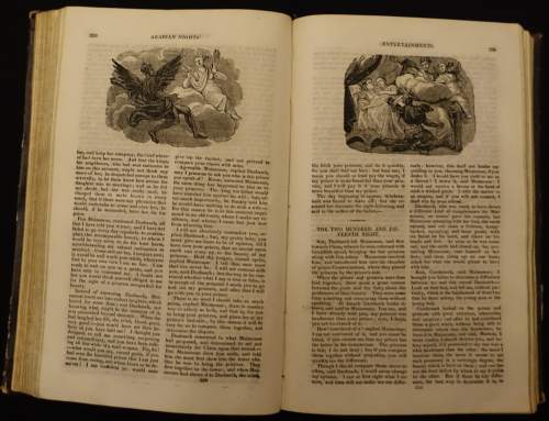 London, Printed by J. Limbird for Ernest Fleischer, Leipzig, 1827. Poměrně vzácně se vyskytující vydání pohádek tisíce a jedné noci. 12+ 556 stran, frontispice, titul a cca 150 drobnějších rytin v textu, dobová polokožená vazba se stopami manipulace; s ohledem na stáří celkově uspokojivě zachováno. 1600 Kč.