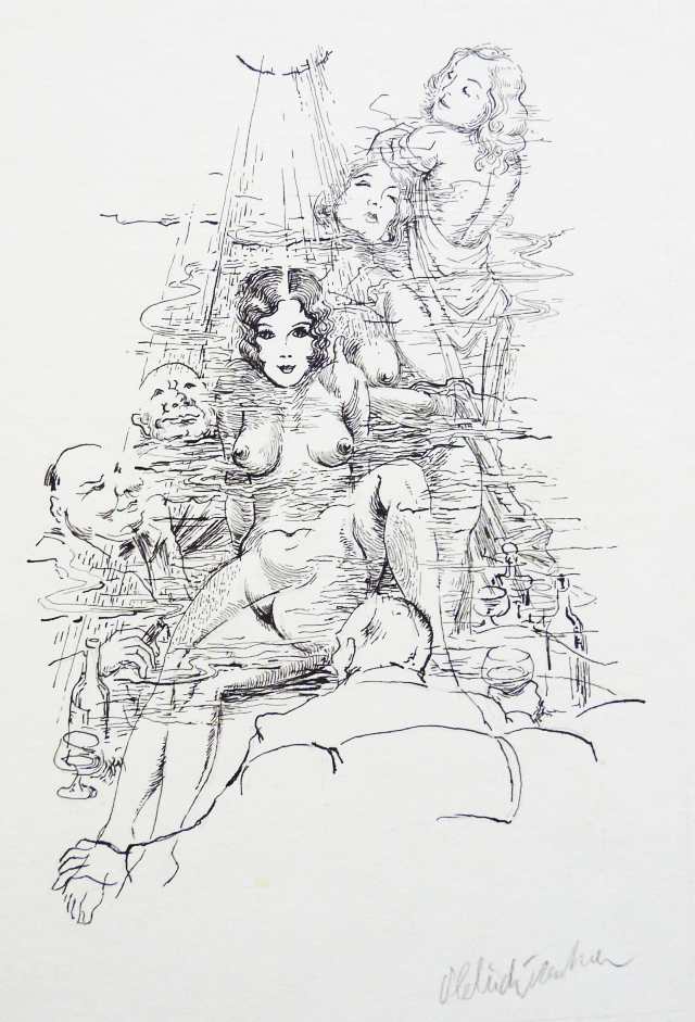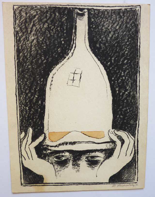 Kresba tuší na lepence. Formát 395x550. Signováno. Do kresby perem později vepsána dedikace: "Někdy, když je člověku zvlášť úzko, ale uvědomí si, že jsou tady starší, kteří nám to mládí závidějí, vydechne lehčeji... Dr. B. H. jeho Vilém, 28. března 1979". Na zadní straně velký podpis a název díla. PRODÁNO