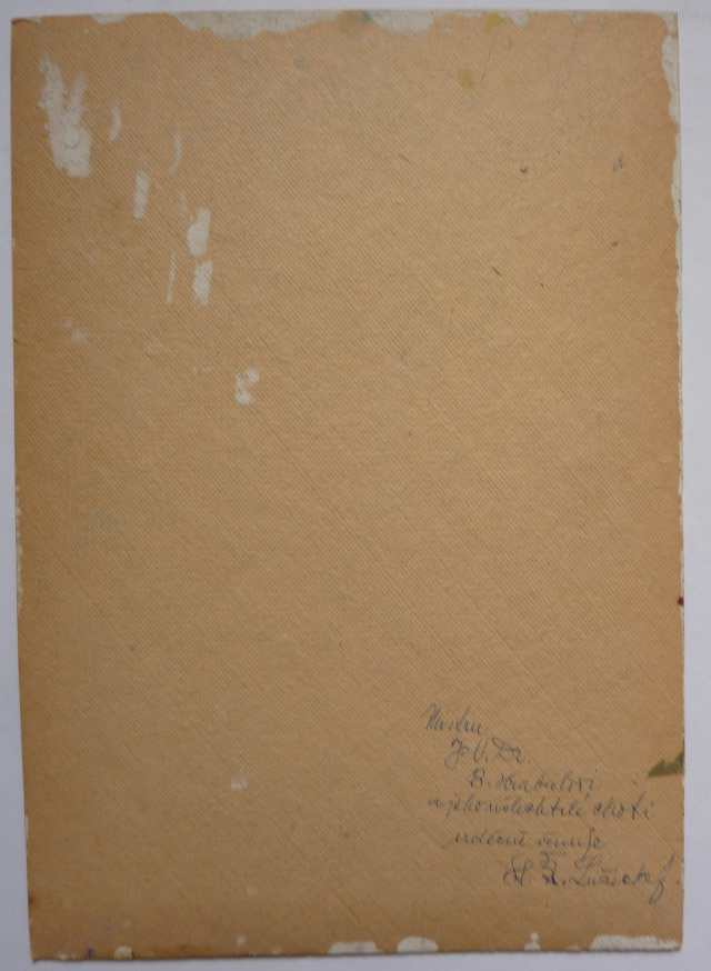 Olej na kartonu. Nečitelně parafováno tužkou (snad: "ZJ/92"). Formát 350x250. Dobrý stav. PRODÁNO