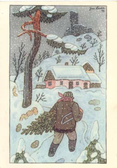 Pohlednice s podpisy Josefa Lady a jeho dcery Aleny. (150x105) Velmi dobrý stav. 580 Kč.